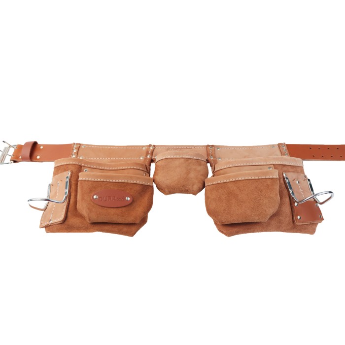 - 5 pockets (one large, one small) with a hammer on each side and a center pocket.