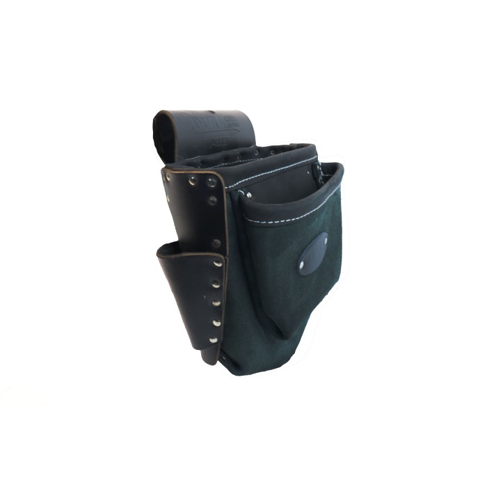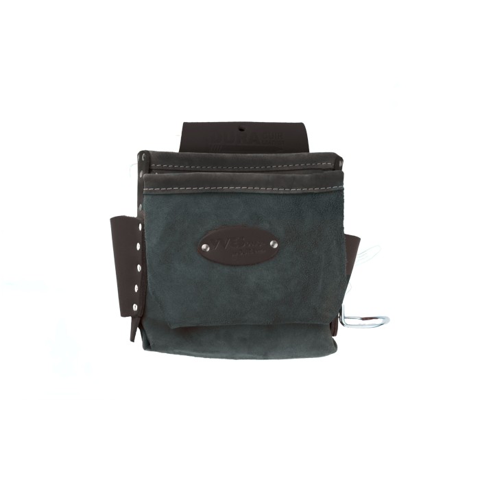 Sac avec deux grandes poches rivetées, un support à marteau ou couteau et une porte cisaille. Le rabat est fabriqué à partir de cuir de ceinture ultra résistant.